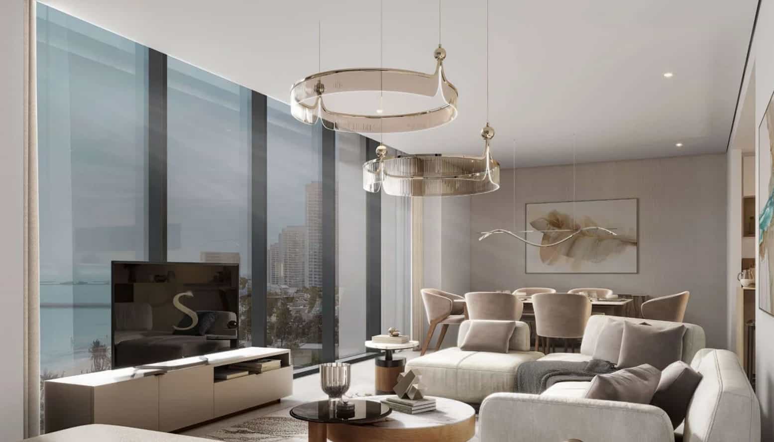 The project brings a resort-style lifestyle to a safe and developing community. Residents enjoy private beaches and promenade, infinity pools with panoramic views, themed zen gardens and extensive green spaces, spa and sauna, fully equipped fitness centres, relaxation areas, outdoor cinema, sports courts, and children’s play areas. Every detail is designed to combine luxury with comfort, providing a calm retreat away from the urban bustle, yet well connected to Dubai.