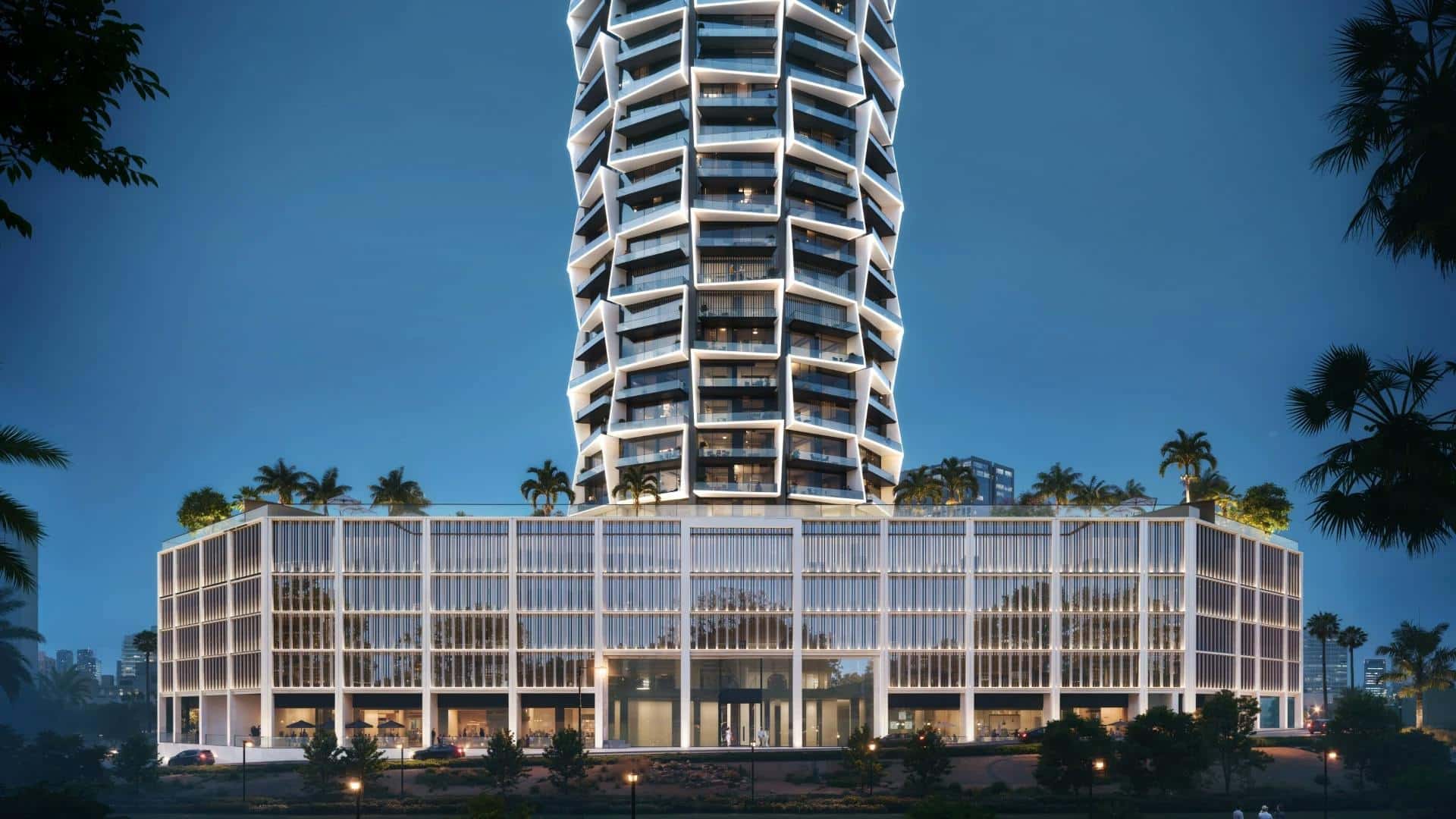 Rises over 60 floors, being the tallest landmark in the area, with additional podium and rooftop levels, and a façade redefining the JVC skyline.