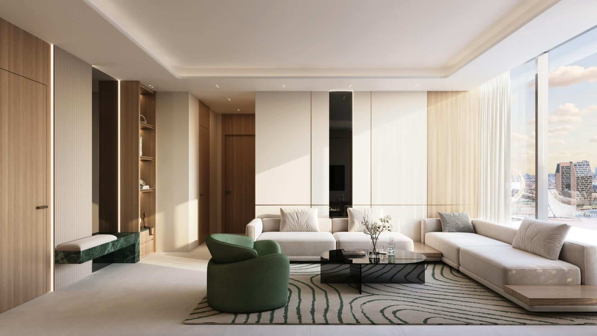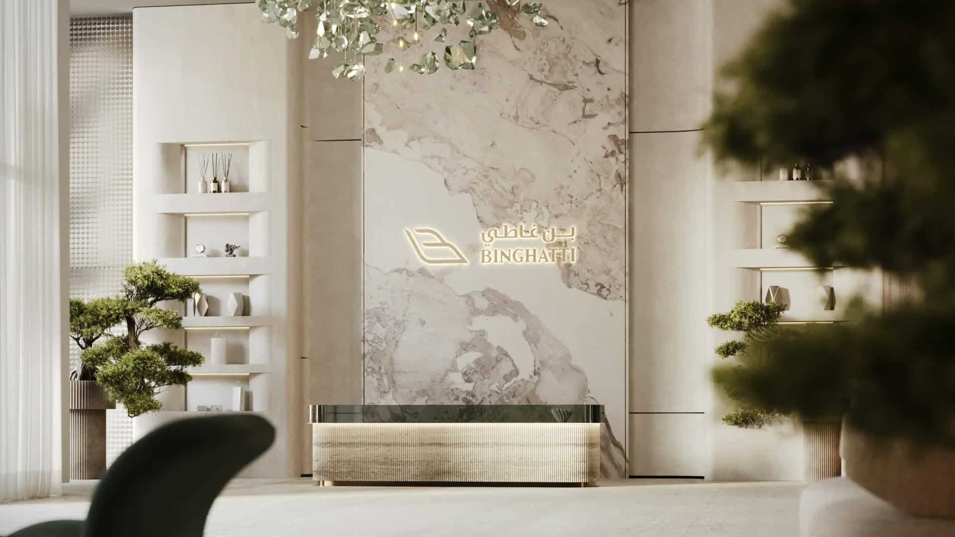 The architectural design bears Binghatti’s signature, with sculpted forms and GRC-clad façades evoking timeless elegance. Premium interiors are crafted from wood, brass, porcelain, and marble, combining warmth with luxury.