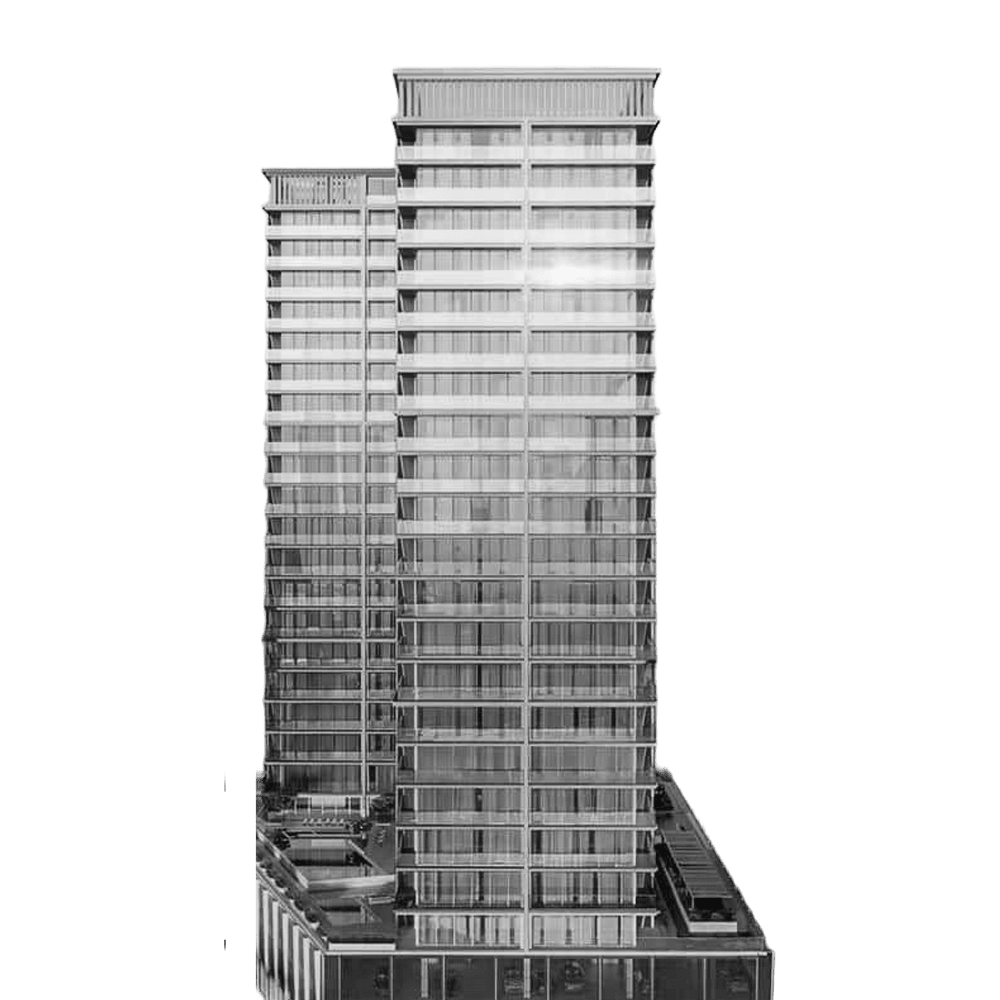 Modern residential complex with 25 storeys, 3 basement levels, ground floor, podium, and 20 floors dedicated to residences.